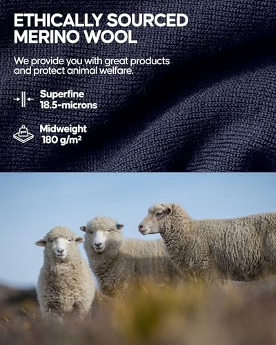 • Premium Merino Wool: Odor-resistant, itch-free, and breathable Merino wool blend with flat seams and no neck tags for irritation-free comfort. Moisture-wicking and temperature-regulating, ideal for workouts, hiking, skiing, or home use