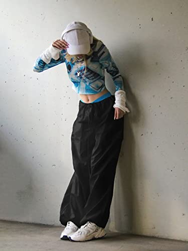 LQI Parachute Pants for Women Y2K Baggy Cargo Pants Drawstring Trousers Low Rise Loose Jogger Sweatpants 6