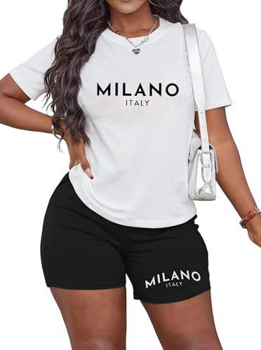 • FEATURES: Short sets for women 2 piece, graphic short sleeve tee shirt and bodycon biker shorts, workout sets, jogger sets for women 2 piece, super flattering