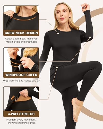 • Soft and Warm: Thermal underwear for women is made of 90% Polyester and 10% Spandex fabric with Microfiber fleece lined It fits snug like a second skin for perfect heat retention minimizing heat loss, lightweight and soft