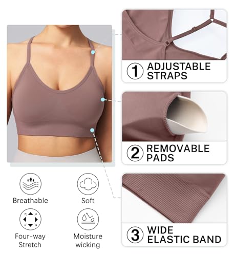 Women's Sports Bras Adjustable Y Back Spaghetti Strap Racerback Padded Wireless Yoga Workout Tops 5