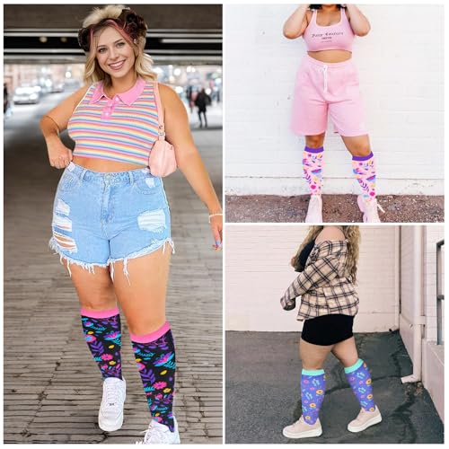 3 Pairs Plus Size Compression Socks for Women Wide Calf Extra Large Knee High Support for Travel,Yoga, Running 6