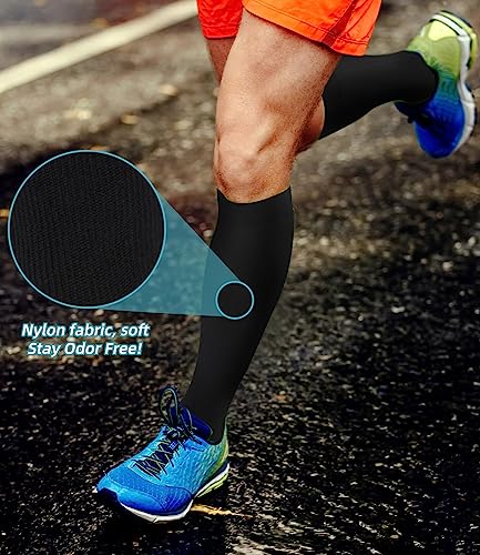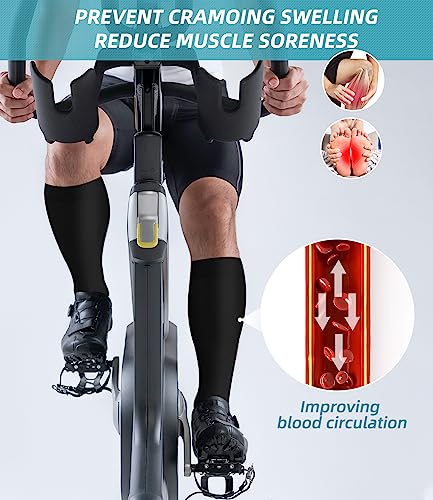 • REDUCE INJURIES - Provide mild squeezing for warmness and enhance blood moving through your legs. Remove stress and stimulate every cell, relieves symptoms varicose veins and excess fluid retention. Help relieve pain & discomfort related to plantar fasciitis, Provides true graduated compression to support your legs, reduce fatigue, soreness, cramping and prevent injuries at the same time.