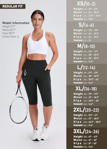 HOT ! Women's Long Biker Shorts Hiking Knee Length Capri Leggings, High Waisted Bermuda Shorts with Pockets 14 Inch