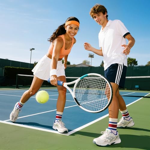 American Trends Retro Striped Crew Socks for Women Slouchy Athletic Calf Tube Socks Running Golf Tennis Volleyball Etc 4