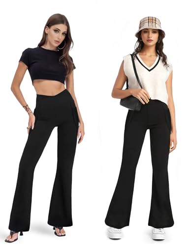 HOT ! Buauty Black Flare Leggings for Women, High-Waisted Crossover Yoga Flared Pants Bootcut Casual Gym Workout Clothes