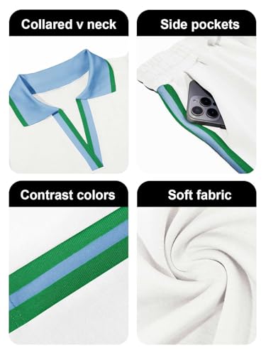 Fisoew Womens 2 Piece Skirt Set Summer Cap Sleeve Tops Matching Tennis Skirts Casual Color Block Vacation Outfits Lounge Sets 4