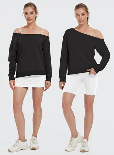 Hiverlay Off The Shoulder Sweatshirts for Women Long Sleeve Workout Tops Croped Sweatshirt Oversized Pullover Fall 2025 6