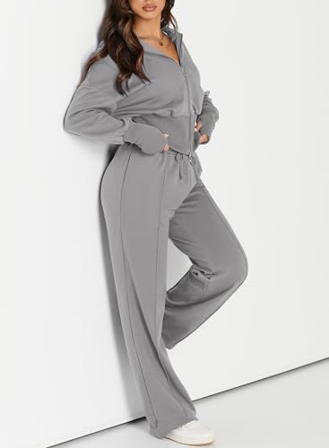 Herseas Womens 2 Piece Casual Outfit Workout Hoodie Sweatsuits with Sweatpant Travel Airport Track Suits Lounge Sets 2