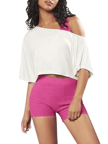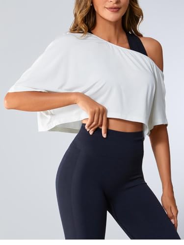 HOT ! SOLY HUX Women's Off The Shoulder Tee Yoga Workout Crop Top Half Sleeve Asymmetrical Neck Activewear T Shirt