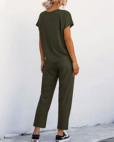 Eurivicy Women's 2 Piece Outfits Sets Casual Short Sleeve Crewneck T-Shirts and Pocketed Jogger Pants Summer Tracksuit Set 2
