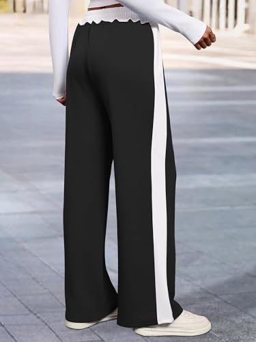 Wide Leg Sweatpants Women High Rise Color Block Sweat Pants 2025 Teen Girl Baggy Jogger Sweatpant with Pockets 2