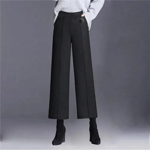 HOT ! Fall Winter Womens Woolen Wide Leg Pants Women High Waist Office Ankle Length Pantalones Wool Blend Trousers