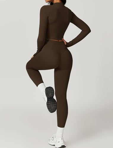 Workout Outfits for Women 3 Piece Long Sleeve Zip Up Cropped Jacket, Sports Bra and Tummy Control Leggings 5