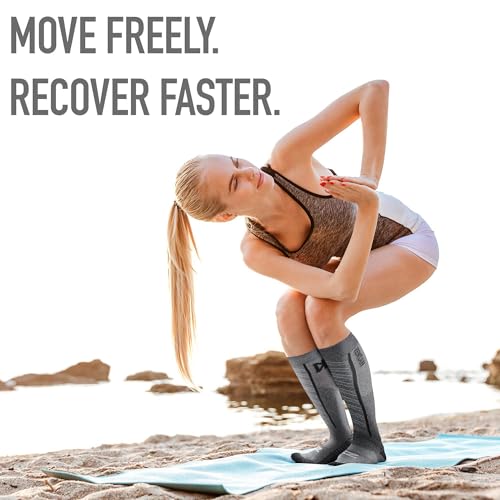 • Graduated Compression: There is more compression in the ankle area and less in the calf area, helping to promote blood flow by pushing the blood back to the heart through the veins. This prevents cramping and swelling, and also helps to improve muscle recovery time, as muscles receive the greater amount of oxygenated blood they need to recover. Use while running or working out to take your sport to the next level.