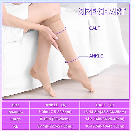 • Transparent, Thin, Sheer Material: the open toe sheer compression stockings are mainly made of nylon, reliable and breathable, with good tensile strength, which helps to reduce muscle fatigue and prevent ankle sprains, suitable for pregnant women people with swollen legs, lightweight and comfortable; The nude sheer design is convenient for you to match clothes, casual clothes, uniforms, dresses, etc., for various kinds of occasions
