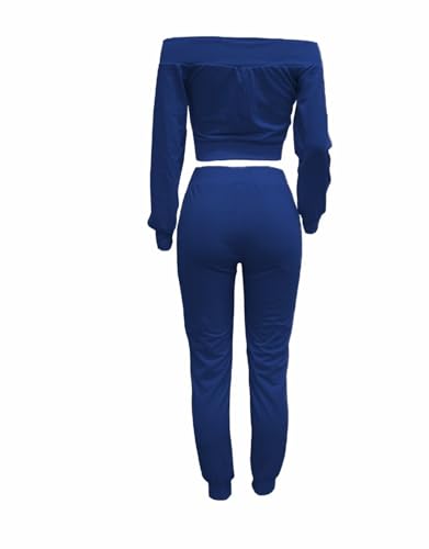 HOT ! acelyn Sexy 2 Piece Outfits for Women Off Shoulder Lace Up Long Sleeve Crop Top Pants Sets Tracksuit Casual Sweatsuit
