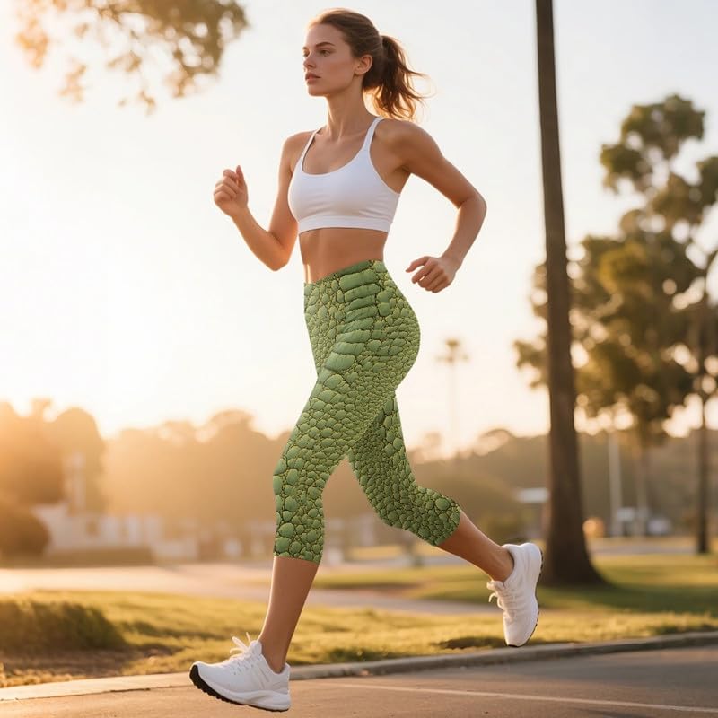 Irisjudy High Waist Capri Leggings Women Crocodile Skin Workout Capri Yoga Pants with Pocket Peony Flower Plus Size Capris 6