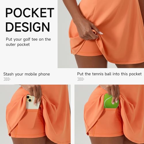 • Stay Safe In 2 In 1 Tennis Dress:Workout dress with built-in shorts & removable bra for a total coverage and ease of movement, you can reach to return every serve without anything holding you back. Plus, two side pockets are added in undershorts are great for keeping your essentials within reach