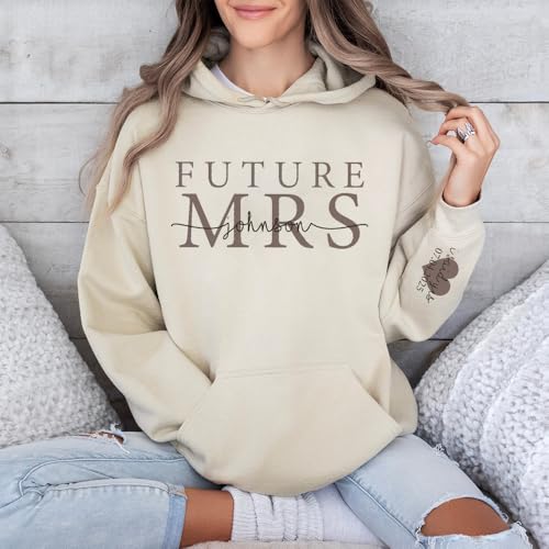 HOT ! Custom Mrs Sweatshirt, Future Mrs Hoodie, Bride Sweatshirt, Customized Last Name & Date On Sleeve, Engagement Gift
