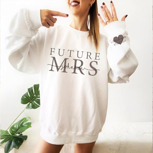 More information about Custom Mrs Sweatshirt, Future Mrs Hoodie, Bride Sweatshirt, Customized Last Name & Date On Sleeve, Engagement Gift
