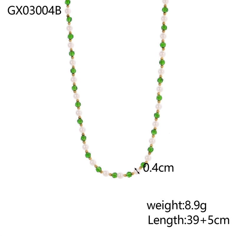 Casual Minimalist Geometric Natural Stone Titanium Steel Necklace In Bulk 9