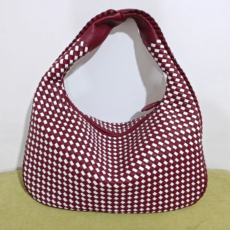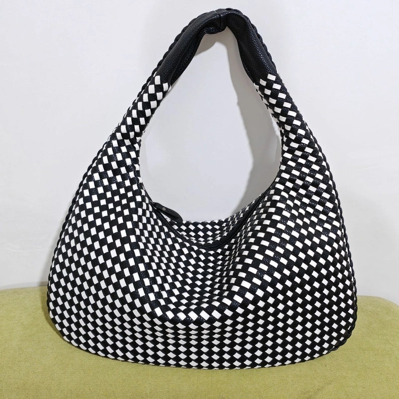 HOT ! Women's Medium Pu Leather Solid Color Vintage Style Classic Style Weave Zipper Straw Bag