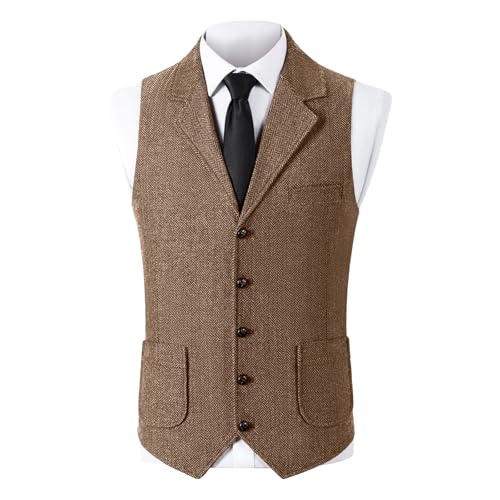 Men Single Breasted Vintage Sleeveless Vests Pockets Blazer Slim Fit Vests Lapel Solid Color Waistcoat Business 4