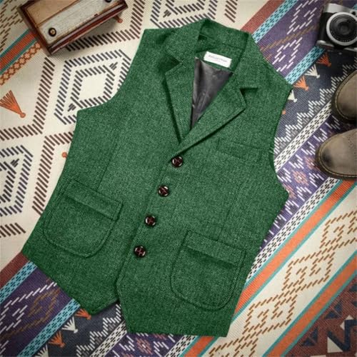 HOT ! Men's Solid Color Lapel Single-Breasted Slim Pocket Herringbone Wool Tweed Vest