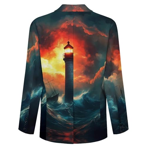 Lighthouse Stormy Wave Mens Suit Jacket Lapel Blazers V Neck Button Business Coat Tuxedo for Wedding Party 1