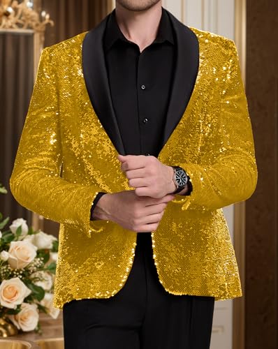 • SLIM FIT FOR MODERN LOOK - Classic collar design, can control a variety of styles of tie or bow tie, shoulders with high-quality mats, so that the shoulders are flat and stylish. This timeless suit comes with a shawl lapel collar to accentuate your unique style. The shiny sequin fabric will make you the only focus in any occasion.