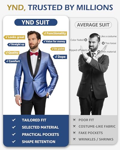 More information about YND Men's Shiny Tuxedo Jacket, Sequin Slim Fit Blazer, One-Button Shawl Lapel Suit for Party, Prom, Wedding, Dinner
