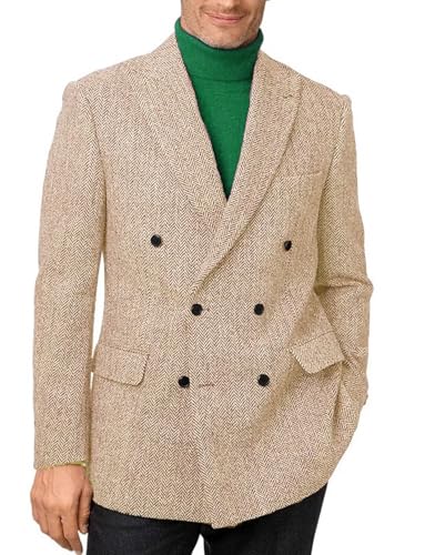 • 【Soft Material】70% Herringbone and 30% Polyester for the elegant mens blazers and sport coats tweed, fashion men suit double breasted tuxedo,comfort for all seasons