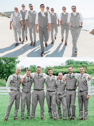 Mens Suits 2 Piece Slim Fit Suit Set V-Neck Solid Vest Pants Wedding Prom Tuxedo Set 4