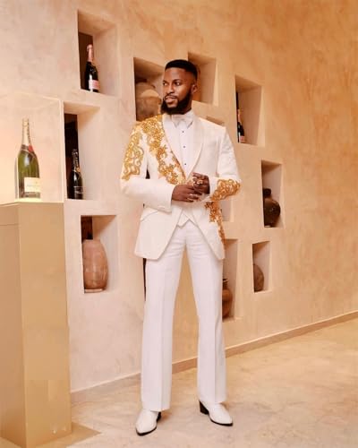 More information about Men's Luxury White Tuxedo with Shiny Rhinestone Slim Fit Dinner Blazer Jacket for Prom Party Wedding