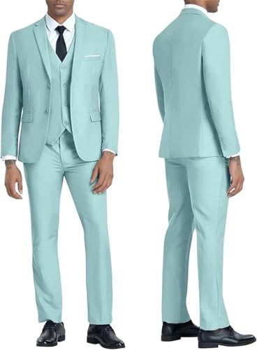 Men 3-Piece Slim Fit Suit 2-Button Solid Blazer Vest Pants for Wedding Business Set for Groom 3