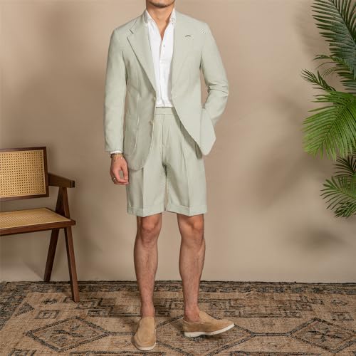More information about Mens Shorts Suits 2 Piece Seersucker Suit Slim Fit Two Button Blazer & Shorts Casual Set Summer Beach Wedding 2025