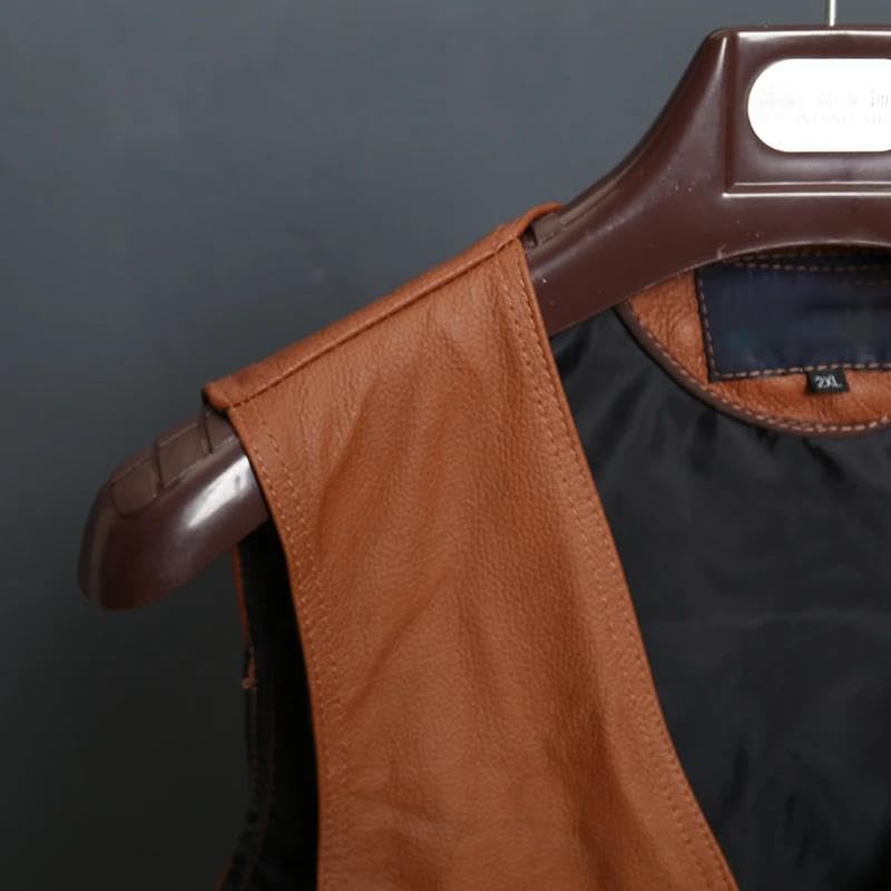 Men's Slim Fit Brown Genuine Leather Waistcoat 7