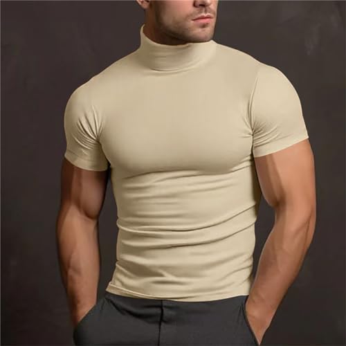 HOT ! Men's Cuban Guayabera Mock Turtleneck Slimming Short Sleeve Shirt Chest Abdomen Compression Tops Sports Undershirt