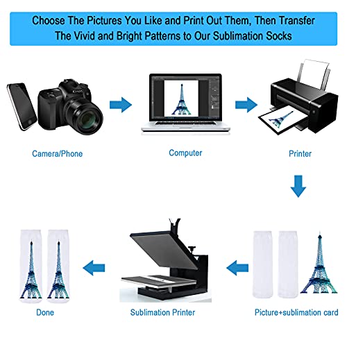 • Printable Design: our socks for sublimation are white and blank, offering you enough space to create, you can choose the pictures you like and print out them, then transfer the vivid and bright patterns to our sublimation socks, which is easy to make your own socks
