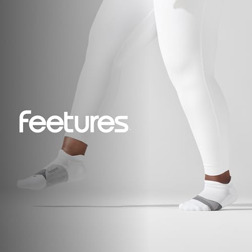 HOT ! Feetures Elite Light Cushion No Show Tab Ankle Socks - Sport Sock with Targeted Compression - New White, S (6 Pair)