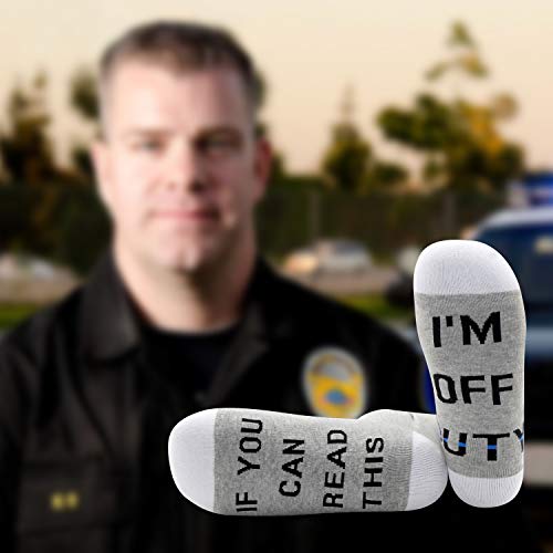 JXGZSO 2 Pairs Police Gift Socks Can Read This I'm Off Duty Thin Blue Line Gag Gift for Cop Policeman 5