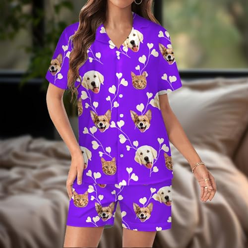 Custom Face Pajamas Set for Men Women, Personalized Button Down 2 Piece Sleepwear Pjs Lounge Sets 2
