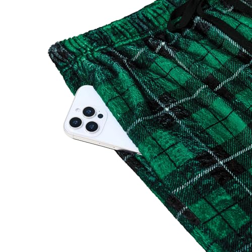 Mens Fuzzy Plaid Pajama Pants - Brushed Flannel Sleepwear with Drawstring & Pockets, Plaid & Print Pj Pants 7