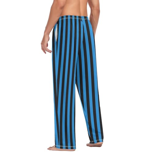 Men's Pajama Pants Blue and Black Stripes Sleep Bottoms Lounge Sleepwear with Pockets Drawstring 1