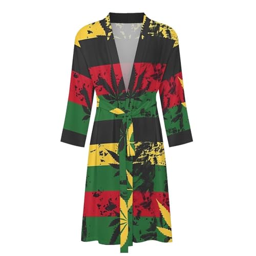 HOT ! Vintage Rasta Flag Weed Men's Robes Long Sleeve V Neck Bath Robe Printed Bathrobes Cozy Soft Sleepwear