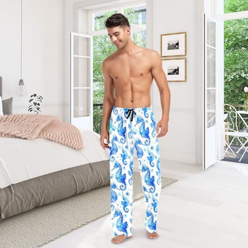 Blue Seahorses Pattern Men's Pajamas Pants Cotton Sleep Bottoms Pants Lounge Sleepwear - S 1