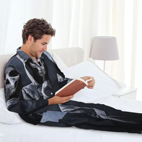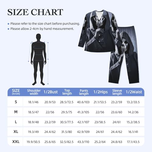 More information about Grim Reaper Showing Hush Sign Mens Pajamas Set Button Down Sleepwear Set Long Sleeve Loungewear With Pockets