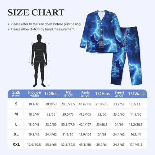 More information about Electric Guitar With Lightning Mens Pajamas Set Button Down Sleepwear Set Long Sleeve Loungewear With Pockets