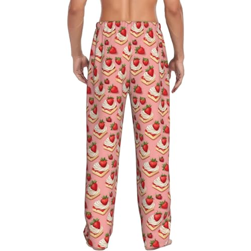Mens Pajama Pants - Strawberry Cake Print Soft Sleep Lounge Pants For Men, Casual Pj Bottoms With Pockets 1